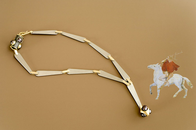 The neck ring "Sunrise" (1999) and the arm bangle "River" (1999) both stem from my work on the theme "Horizon". Here I was interested in the way that celestial moods can be translated into color. |