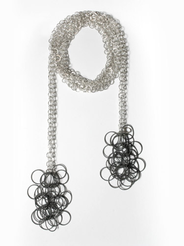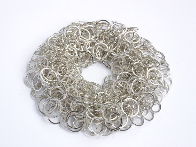 Using mainly silver & oxidized silver I use unit construction methods such as chain mail and hinging, assembling pieces into necklaces, bracelets and rings, giving forms which are three dimensional, flexible, tactile & durable. Movement is an important element in the wearing of these pieces and they are very pleasing to the touch and against the body. It is essential that the jewellery is comfortable and easy to wear. Each piece is hand-crafted at the bench, giving the jewellery a certain individuality. |